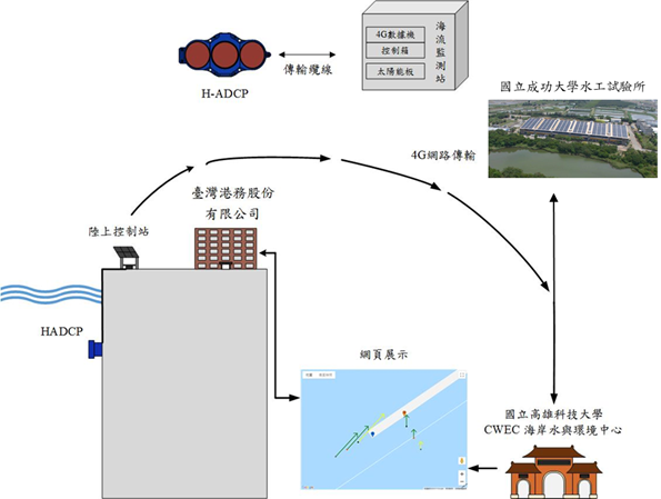 本團隊於2020年在高雄二港口建置水平式海流監測系統與即時資料展示系統,提供港口船舶進出港參考,對於強化船舶進出港航行安全方面效果顯著,